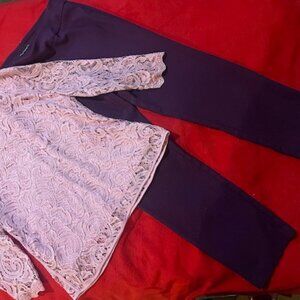 Adrianna Papell Lace Blouse & Counterparts Slim Pants Set – Size L Top / 12 Pant