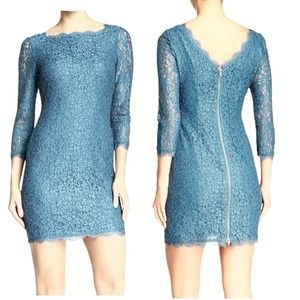 Adrianna Papell Lace Dress Sz Turquoise Blue Scalloped Nwt $160
