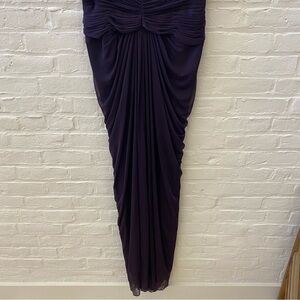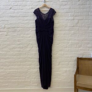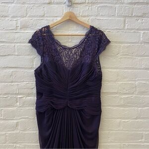 Adrianna Papell || Lace Illusion Bodice Draped Skirt Eggplant Purple 14