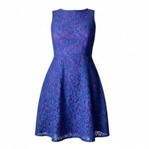 Adrianna Papell Lace Overlay Sleeveless Fit & Flare Cocktail Dress Good Cond - 8