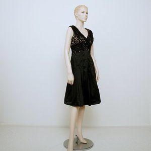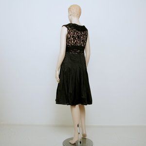 Adrianna Papell Lace Taffeta Sleeveless Portrait V Neck Midi Dress