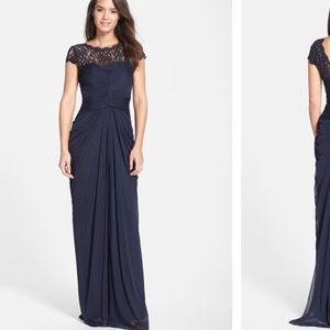 Adrianna Papell - Lace Yoke Drape Gown