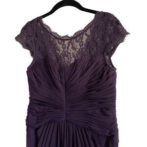 Gorgeous purple Adrianna Papell gown with lace detailing along the top. Size 8. It is in excellent condition, no visible flaws.