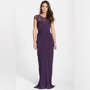 Adrianna Papell Lace Yoke Drape Gown, Purple, Size 8