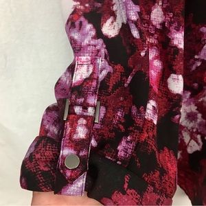 Adrianna Papell Large Top Roll Tab Sleeve Pink Long Sleeve Floral V-Neck Blouse