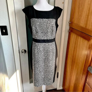 Adrianna Papell Leopard Animal Print Cocktail Dress Career Black White size 10