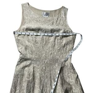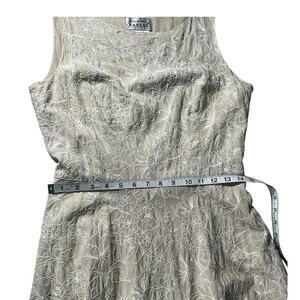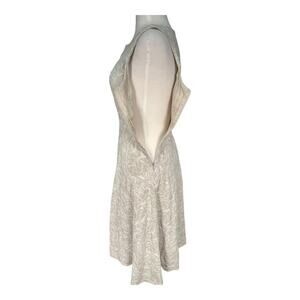 Adrianna Papell Linen Blend Dress Fit-and-Flare Light Weight Floral Embroidered Tan and White