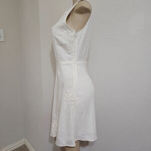 Adrianna Papell Linen Blend Embroidered Floral A Line Ivory Tank Dress Size 6