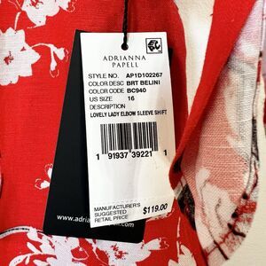 Adrianna Papell Lovely Lady Shift Dress Red Floral Women’s 16 NWT