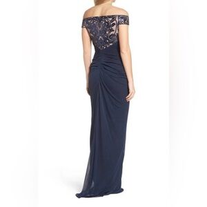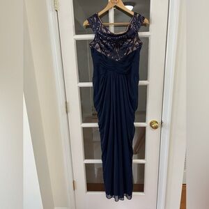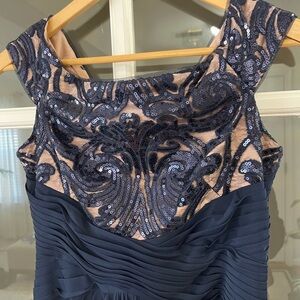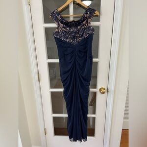 Adrianna Papell Maxi Dress - size 8 - sequin & tulle - navy/rose color - pre owned - excellent condition