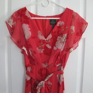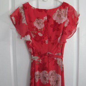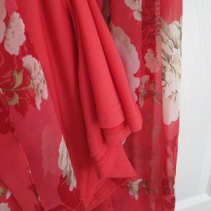 Adrianna Papell Maxi Floral Chiffon Dress in Soft Red and Pink Size 6