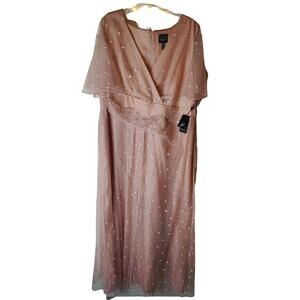 Adrianna Papell MelloBlush Metallic Flutter Sleeve Gown, NWT, 22W