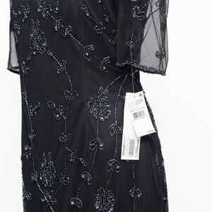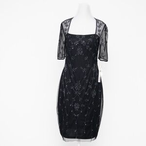 Papell Studio Beaded Short Dress (Style #AP2E208620) in Black Gunmetal, Size 4. Brand new with tags.