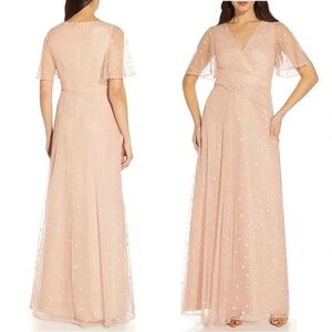Adrianna Papell • Metallic Clip Dot Gown blush pink flutter sleeve surplice