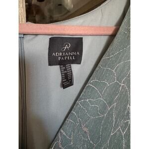 Adrianna Papell Metallic Mesh Draped Gown 24W Sea Glass
