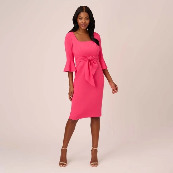 Adrianna Papell Midi Length Sheath Dress in Camellia (bright pink)