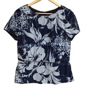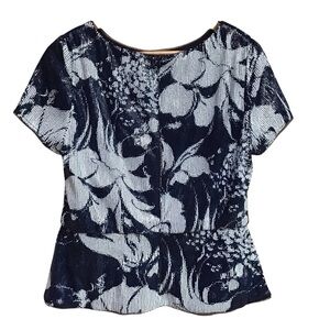 Adrianna Papell Midnight Blue Sequined Floral Peplum Blouse Size 10