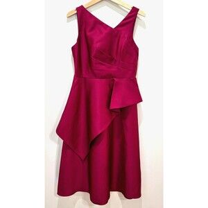 Adrianna Papell Mikado Midi Satin Dress 8 Peplum Red Plum Magenta Cocktail Party