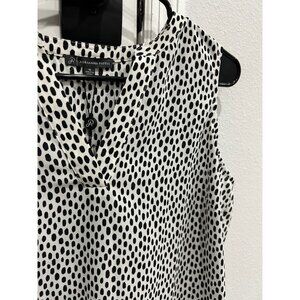 Adrianna Papell NWT Black White Polka Dot Sleeveless Blouse Size Medium