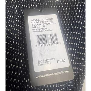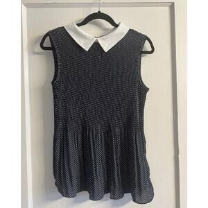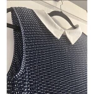 Adrianna Papell NWT Navy Polka Dot Sleeveless Blouse with White Collar, Large