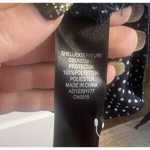 - Color: Navy with white polka dots and a white collar