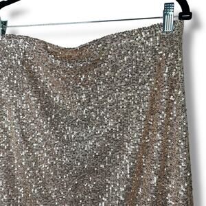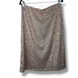 Adrianna Papell NWT Rose Gold Sequin High Waist Pull-On Pencil Midi Skirt Medium