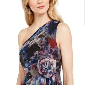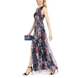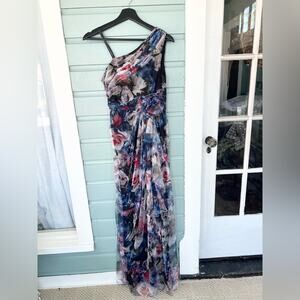 Adrianna Papell NWT one shoulder floral mesh gown wedding guest formal black tie