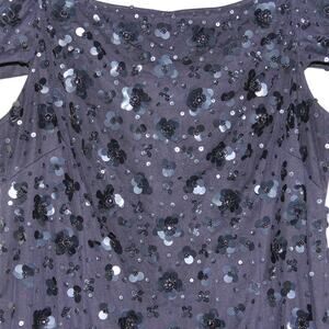 Adrianna Papell Navy Beaded Off Shoulder Formal Maxi Dress Size 14