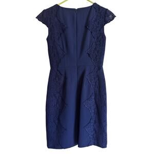 Adrianna Papell Navy Blue Lace Mix Media Sheath Dress Size 2 π Elegant