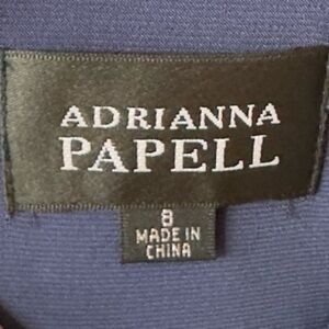 Navy blue cocktail dress by Adrianna Papell. Adrianna Papell is known for designing dresses for all occasions, with a focus on affordable luxury. Great for semi-formal events.