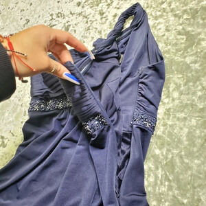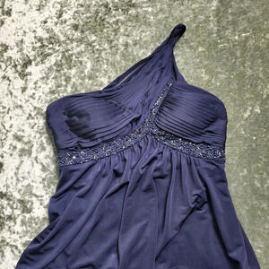 Adrianna Papell Navy One Shoulder Beaded Gown