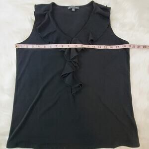 Adrianna Papell Medium Black Ruffle Knit Dress Tank. A ruffle accent completes this scuba knit tank, perfect for a femininely chic look. V-neck, Sleeveless, Ruffle accent. Solid Black Scuba knit. This is new without tags. I have this available in Large as well in a separate listing. See pictures for details. MSRP $49