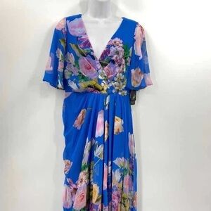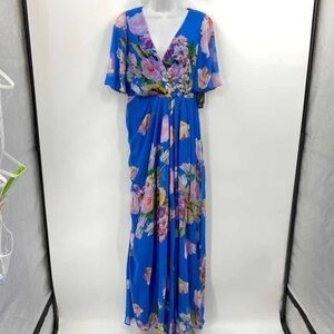 Adrianna Papell New Size 6 Floral Short Sleeve Chiffon Maxi Dress Ocean Dream