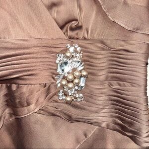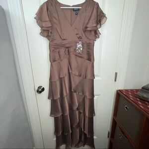 Adrianna Papell Occasions Flutter Sleeve Tiered Chiffon Gown Brown 10