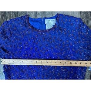 Adrianna Papell Occasions Silk Beaded Top Size P12 Purple Blue Shade Zipper Back