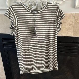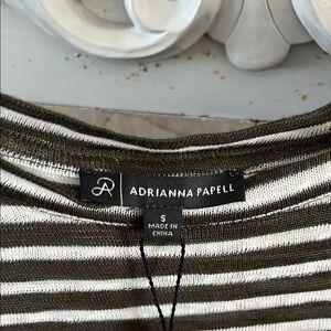 Adrianna Papell Olive and White Striped Tee