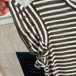 Stylish olive and white stripes. Cute ruffled sleeves