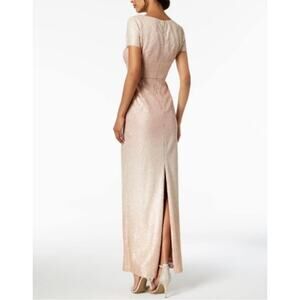 Adrianna Papell Ombre Sequin Column Gown Blush Ombre Short Sleeve V-Neck Size 2