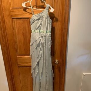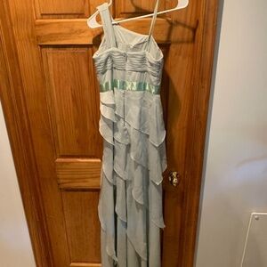 Adrianna Papell One Shoulder Tiered Chiffon Bridesmaid Dress in pale green. Back zipper closure. Women's size 0. Gently used with no flaws.