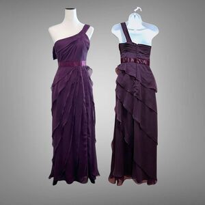 Make a grand entrance in this stunning deep plum Adrianna Papell gown, perfect for weddings, galas, or any special occasion. Designed with timeless elegance and flattering detail, this size 4 beauty features: