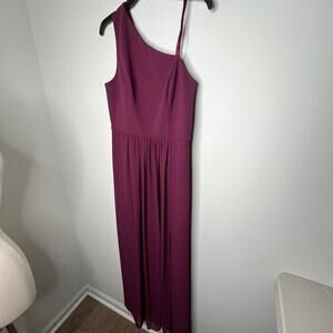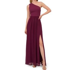 Adrianna Papell One-Shoulder Georgette Cassis Gown Size 8