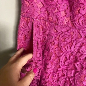 Adrianna Papell Party Dress Fuchsia Pink Lace A-line Size 4 Cocktail Pockets