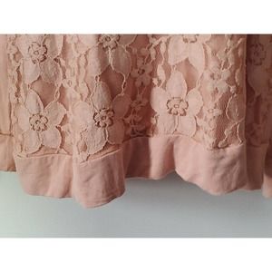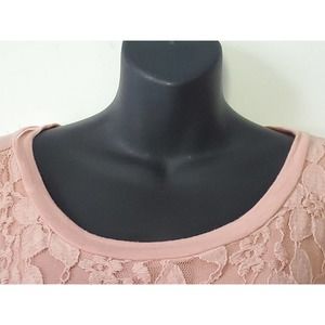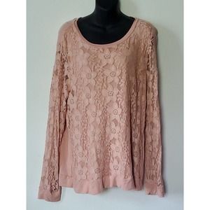 Adrianna Papell Peach Colored Long Sleeve Lacy Front Stretchy XL Round Neck Top