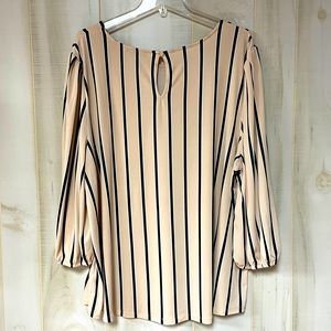 Adrianna Papell Peach and Black Vertical Stripe Top, Sz 3X