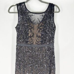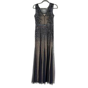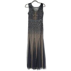 Adrianna Papell Petite Beaded Illusion Gown in Gunmetal