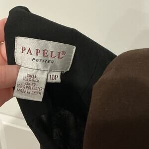 Adrianna Papell Petites Black Tan Polka Dot 100% Silk Y2K Midi Dress Size 10P