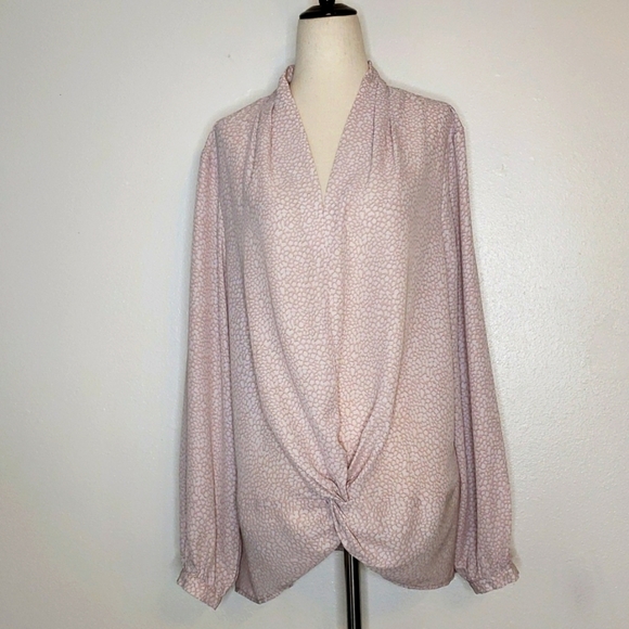 Adrianna Papell Pink Chiffon Blouse Twist Front Polka Dot Top Designer Summer