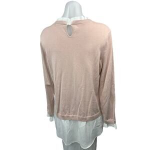 Adrianna Papell Pink Knit Ruffle Crew Neck Long Sleeve Pullover Sweater Top Sz L