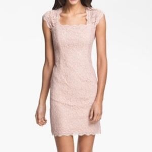 Item: Women's Blush Pink Cutout Back Cap Sleeve Lace Sheath Dress