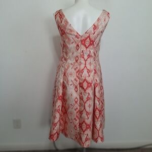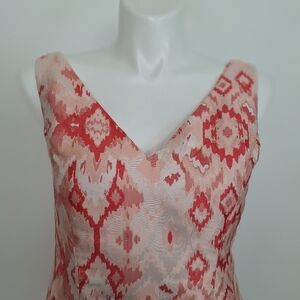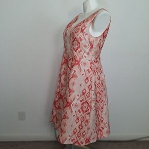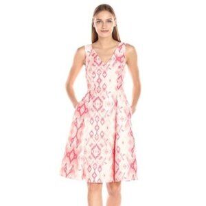 Adrianna Papell Pink White Cocktail Tea Length Aztec Jacquard Feminine Dress L